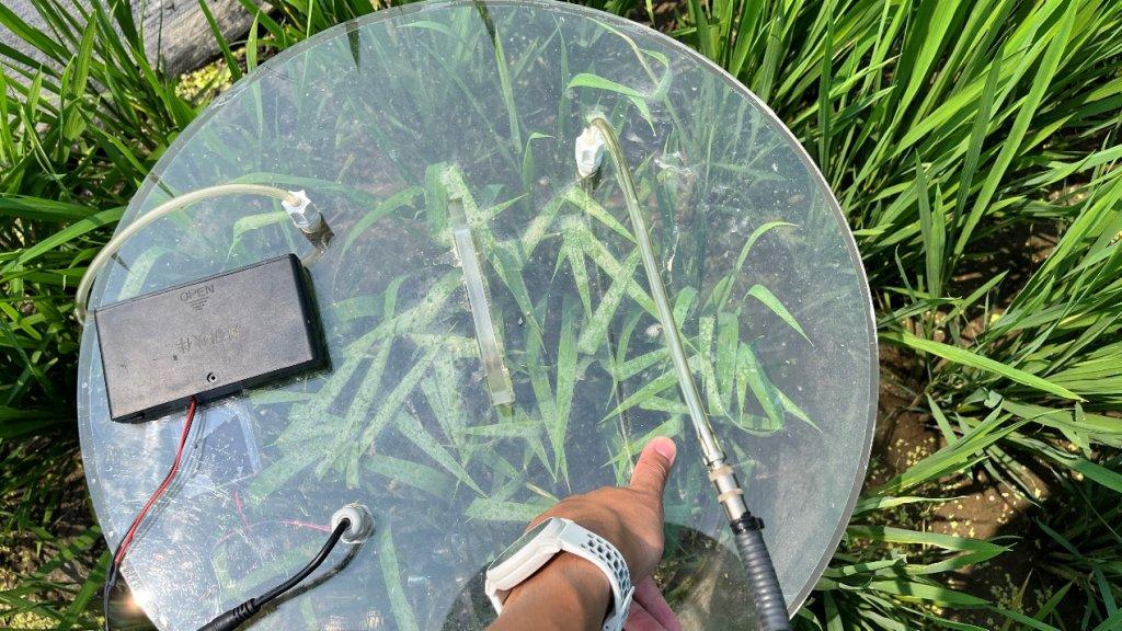 - The height of the chamber and the water surface are poorly adapted. When the plants grow up later and their height exceeds the chamber, the leaves would block the sunlight as well as the air insulation will be weakened by being submerged in the water, which would result in inconvenient operation and systematic errors when measuring.