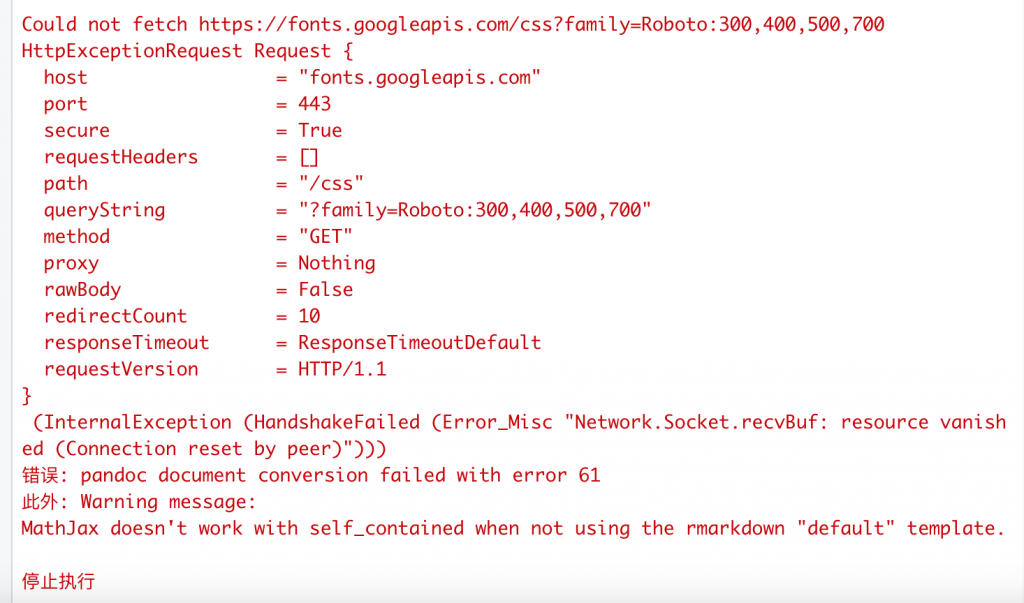 "Could not fetch https://fonts.googleapis.com..." seems a network issue: the template wants to connect to the server fonts.googleapis.com and your computer failed in doing it.